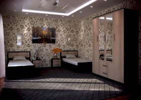 Вместительный четырёхстворчатый шкаф Фиеста справится с большим гардеробом и другими вещами. Модель выполнена из качественной ЛДСП. Корпус сделан в темном цвете венге, а фасады – в светлом лоредо. Комплектация представляет собой центральную зону с двумя нижними выкатными ящиками и отделения со штангой для одежды на плечиках. Справа и слева расположились многочисленные полки для вещей. В створки центральных дверок вмонтированы зеркала.