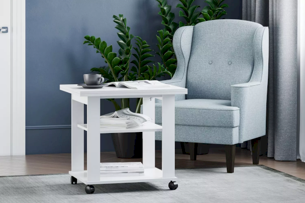 Благодаря поворотному механизму и подвижному соединению столешниц его можно раскладывать для увеличения площади. Если планируется частое использование мебели в различных комнатах, то колеса облегчат перемещение. Все механизмы конструкции обладают простым использованием.