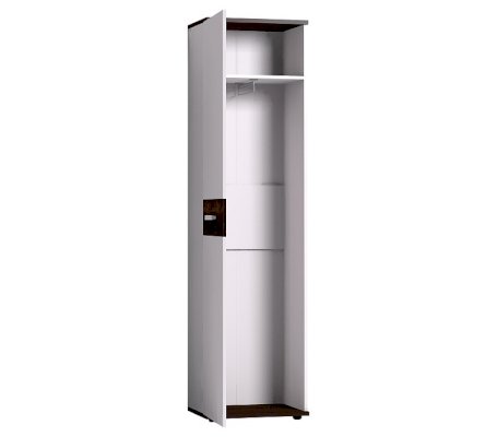 Распашной шкаф для одежды и белья комплектуется выдвижной штангой для одежды. При желании можно докупить и установить модуль Полки Норвуд 72 (в комплекте 3 полки) в заранее просверленные варианты присадки. Верхняя и нижняя детали шкафа толщиной 22 мм и ддекоративная вставка по центру в декоре Орех Шоколадный - яркие акценты простого белого модуля. Ударопрочная кромка на фасаде толщиной 2 мм продлит срок эксплуатации мебели. Фасад шкафа перевешивается на ваше усмотрение на правую или на левую сторону.