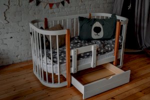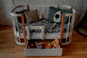 Выдвижной ящик на колесиках для кроватки Dreams Смарт. Для экономии места и хранения нужных вещей. Ящик имеет размеры 700*700мм, в который отлично уберутся игрушки или запасной комплект постельного белья.