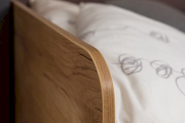 Изголовье и изножье со скругленными углами облицованы ударопрочной кромкой ПВХ 2 мм, что, безусловно, немаловажно для детей и родителей, выбирающих мебель.