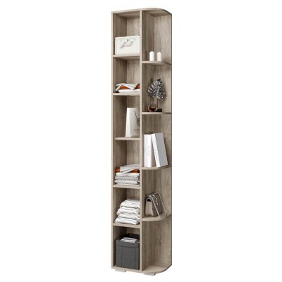 Пенал Наоми не только организует хранение в любой комнате вашей квартиры. Благодаря угловому завершению с открытыми полками, в нем можно разместить необходимые предметы декора, которые должны быть на виду. Фасады дверцы, встроенная ручка и корпус в цвете дуб каньон позвоят изделию вписаться в современный интерьер.