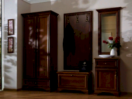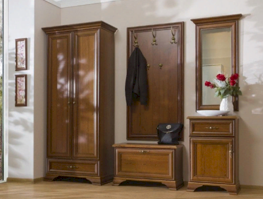 Кентаки - мебель классического стиля, отличающаяся природными цветами, отделкой фактурой, всегда актуально и востребована, она настолько универсальна, что без проблем впишется в любой современный дизайн. Стиль набора модульной мебели подчеркивается лакированной патинированной планкой в фасадах, карнизами - завершающим акцентом в зеркалах и высоких элементах набора, витиеватыми ручками.