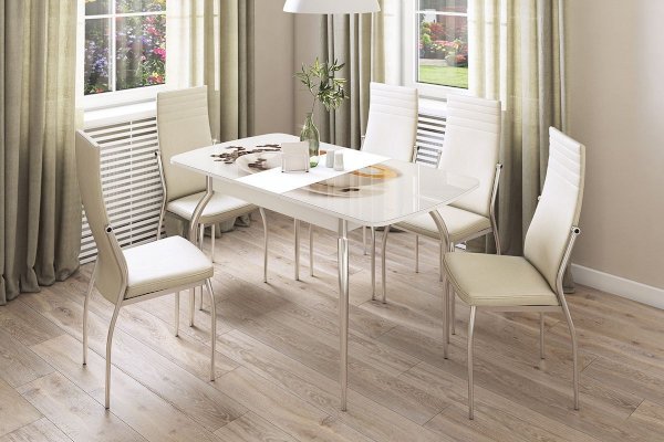 Большой стол – роскошь в наше время из-за маленькой жилой площади. Но есть замечательный вариант – стол «Танго». Компактный в сложенном виде и внушительный, если его разложить. Подходит как для будних завтраков-обедов-ужинов, так и больших праздников! Благодаря большому выбору цветовой гаммы  впишется в любой интерьер.