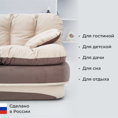 Бескаркасный диван-кровать «Клиффорд» – отличный выбор как диван в гостиную для отдыха всей семьи, так и как детский диванчик. Основа дивана состоит из поролона высотой в 40 сантиметров, а мягчайшая перина из синтепуха дарит непередаваемые ощущения комфорта.