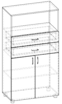 Двухстворчатый стеллаж с двумя ящиками Лидер СТ.040.800-01 (Баронс)